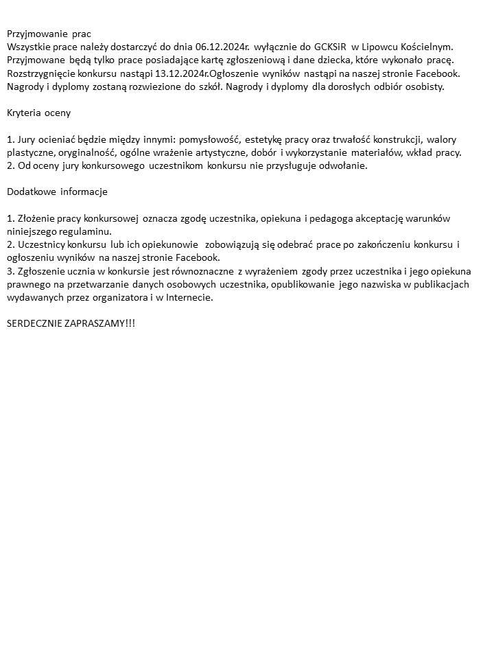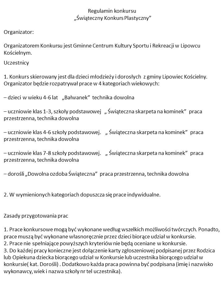 GCKSiR w Lipowcu Kościelnym zaprasza do udziału w świątecznym konkursie plastycznym