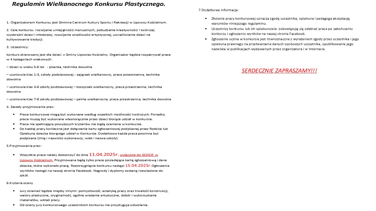 Zaproszenie do udziału w Wielkanocnym Konkursie Plastycznym