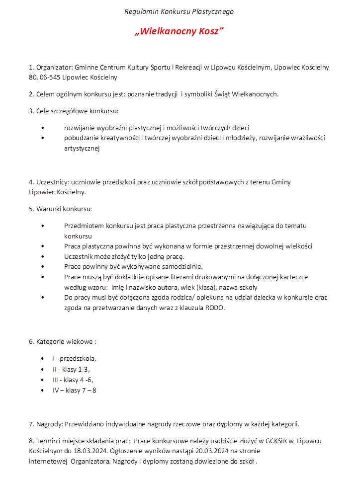 Zaproszenie do udziału w konkursie plastycznym na "Wielkanocny Kosz"
