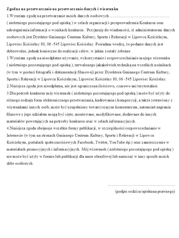 Zgoda na przetwarzanie danych osobowych